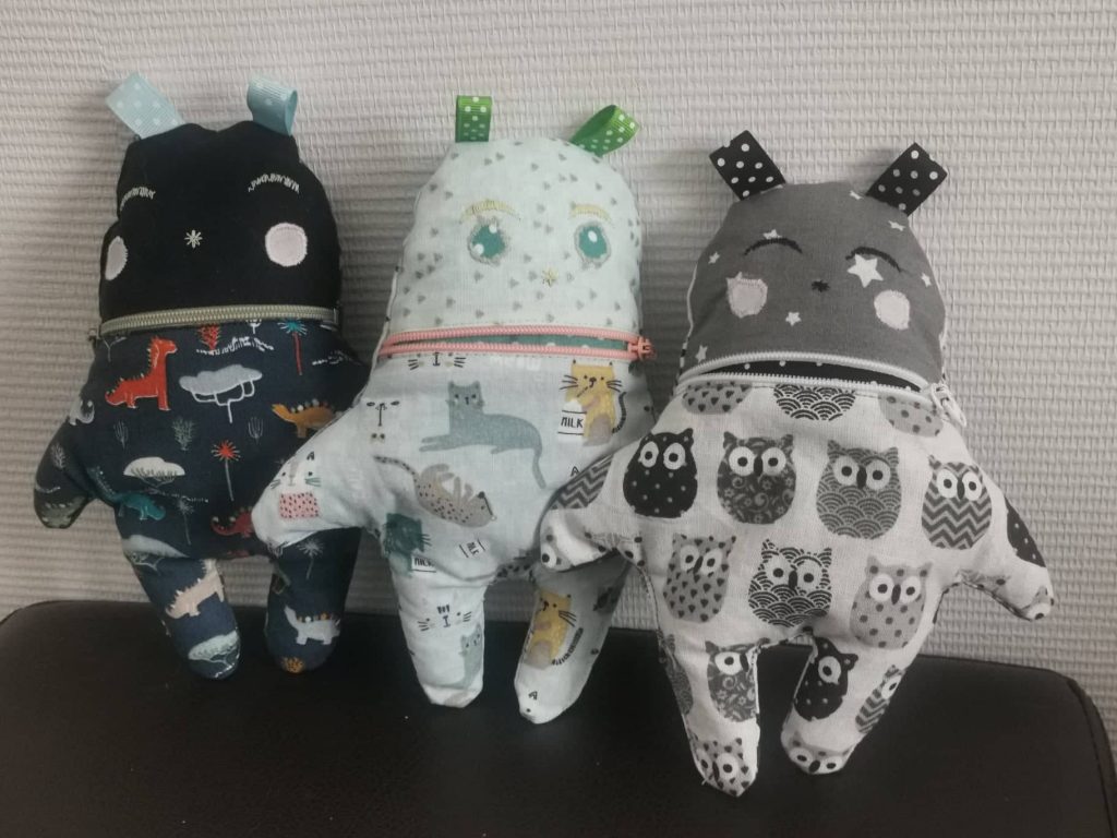 Il est adapté à tous les âges, il ne contient pas de pièce dangereuse, tout est cousu . Pour les plus petits, ce sont les parents qui vont ouvrir et fermer la bouche avec l’intention d’apporter le meilleur à l’enfant pour son sommeil. J’en ai même déjà créé pour une adulte qui est ravie de son bonhomme.